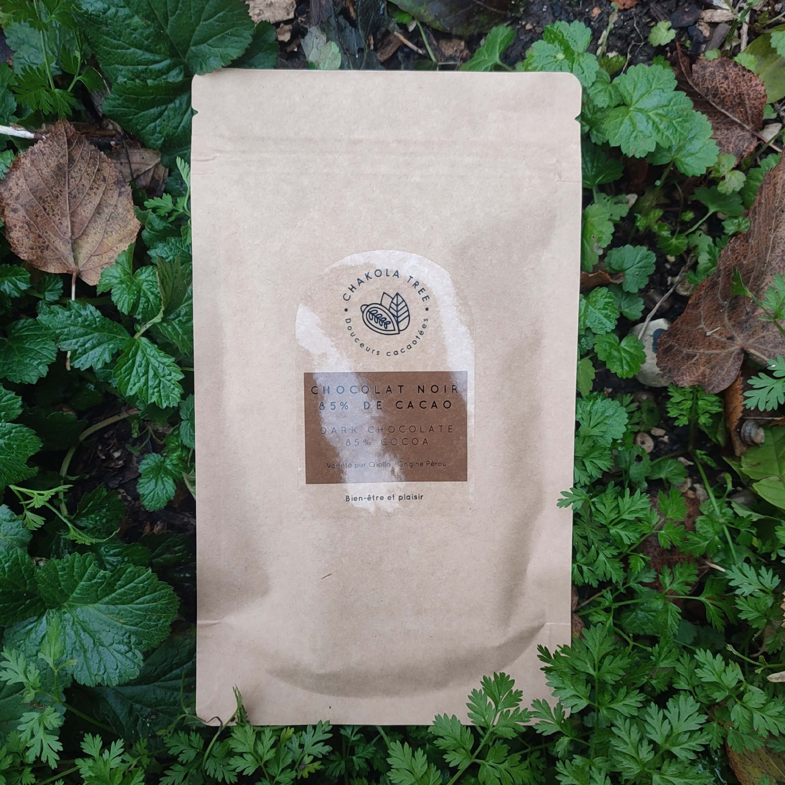 Ingrédients : chocolat noir 85% de cacao (fèves de cacao*, sucre de canne complet, beurre de cacao).